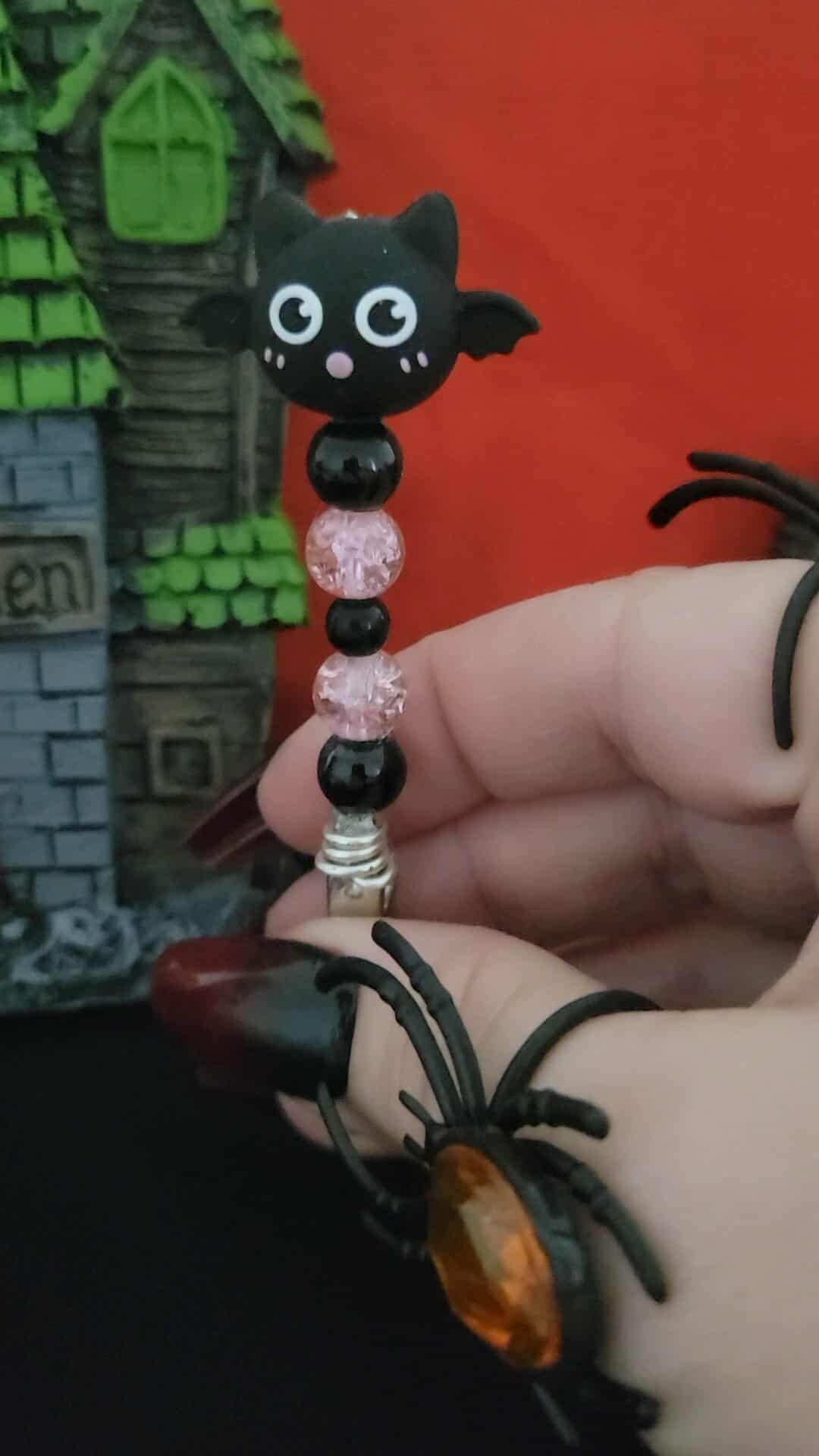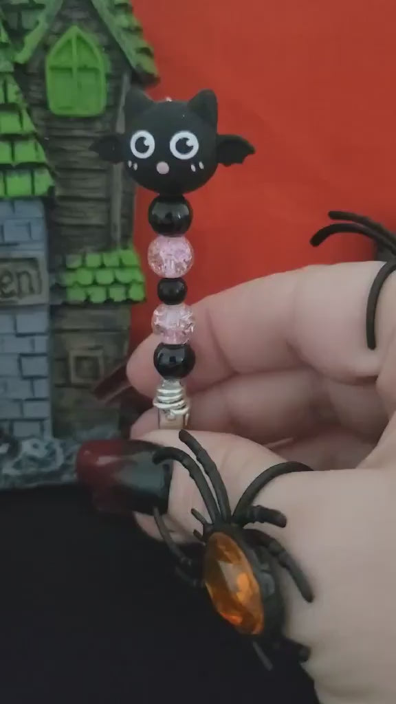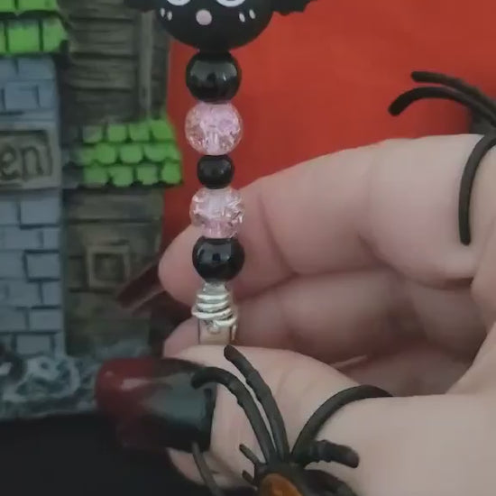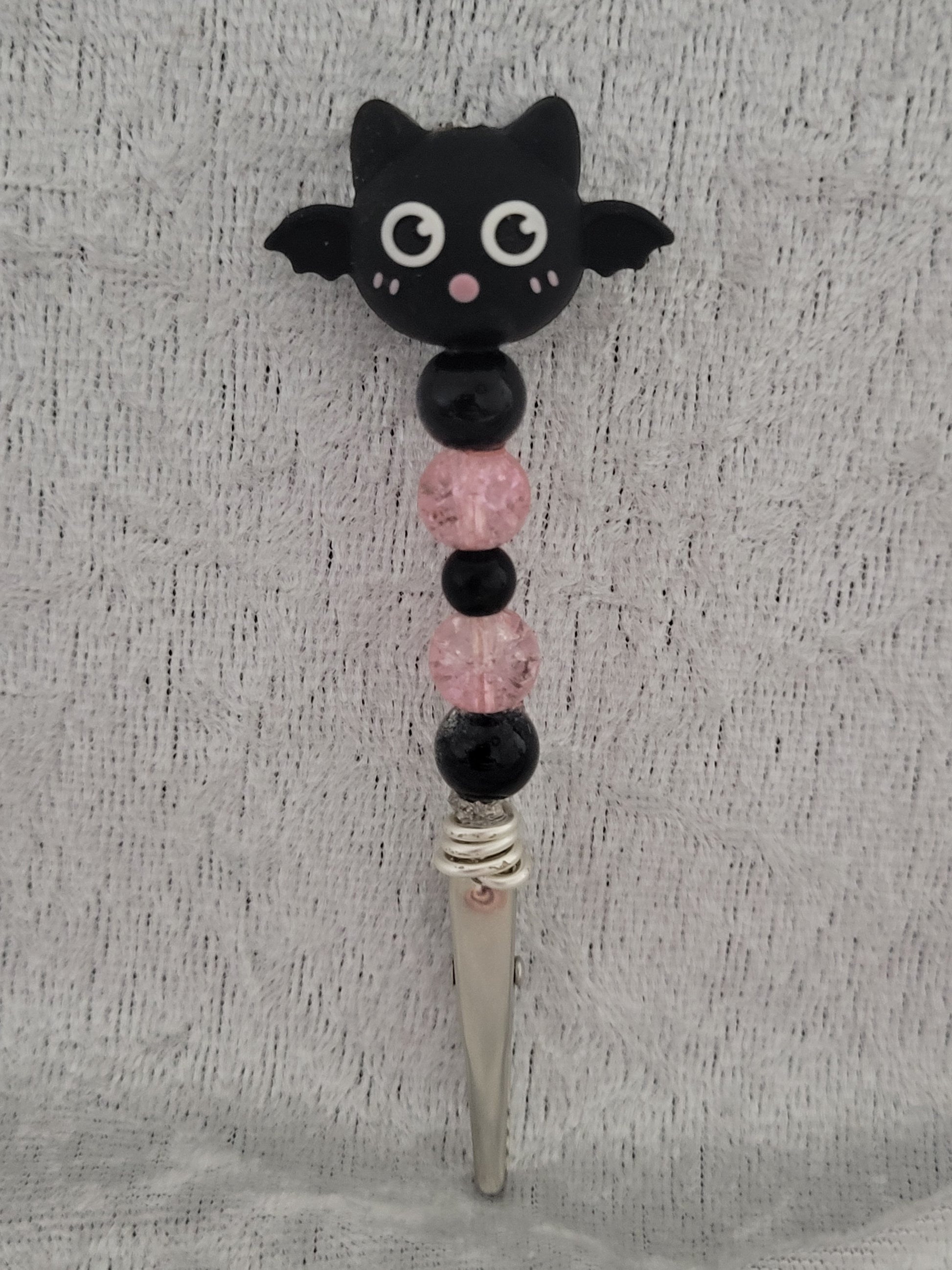 Sweet meets spooky with the Blush Bat roach clip—black bat bead and pink sparkle beads for a cute gothic touch to any smoke session.