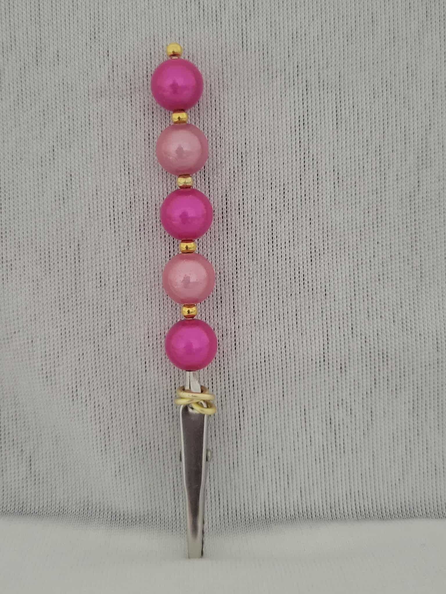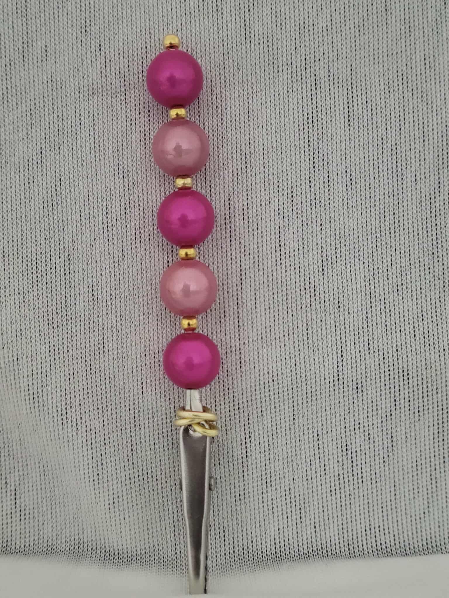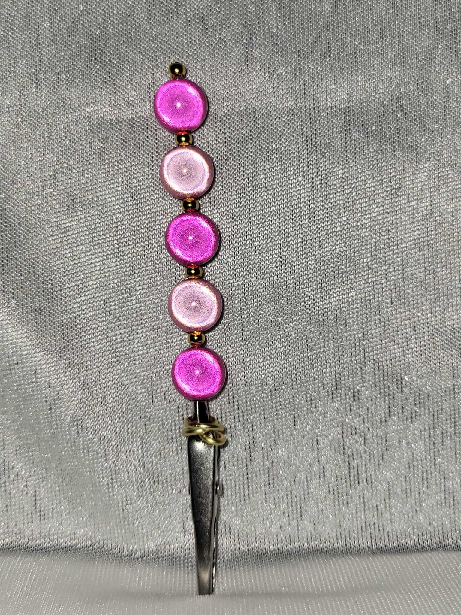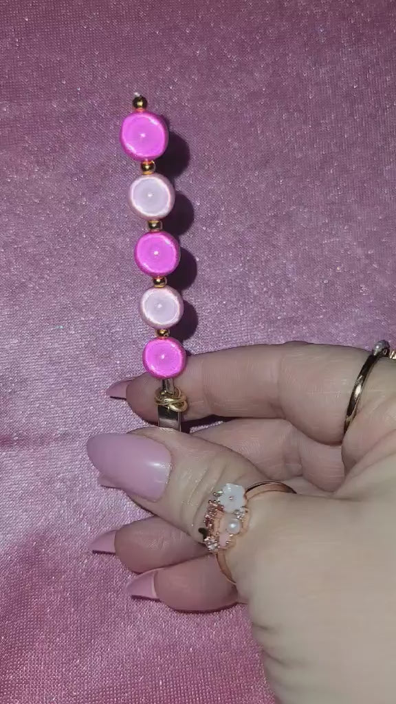 Handmade reflective roach clip with bold fuchsia and soft blush beads. Glam gold accents and durable stainless clip—perfect stoner accessory or gift.