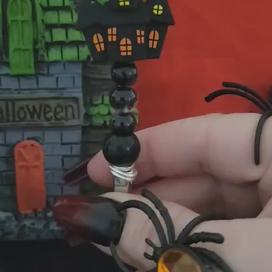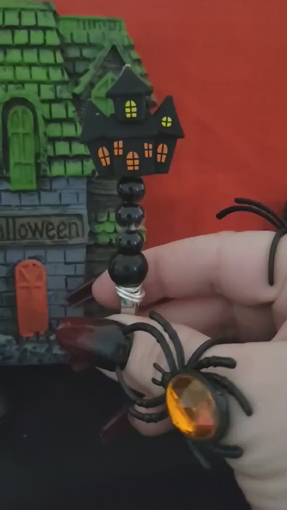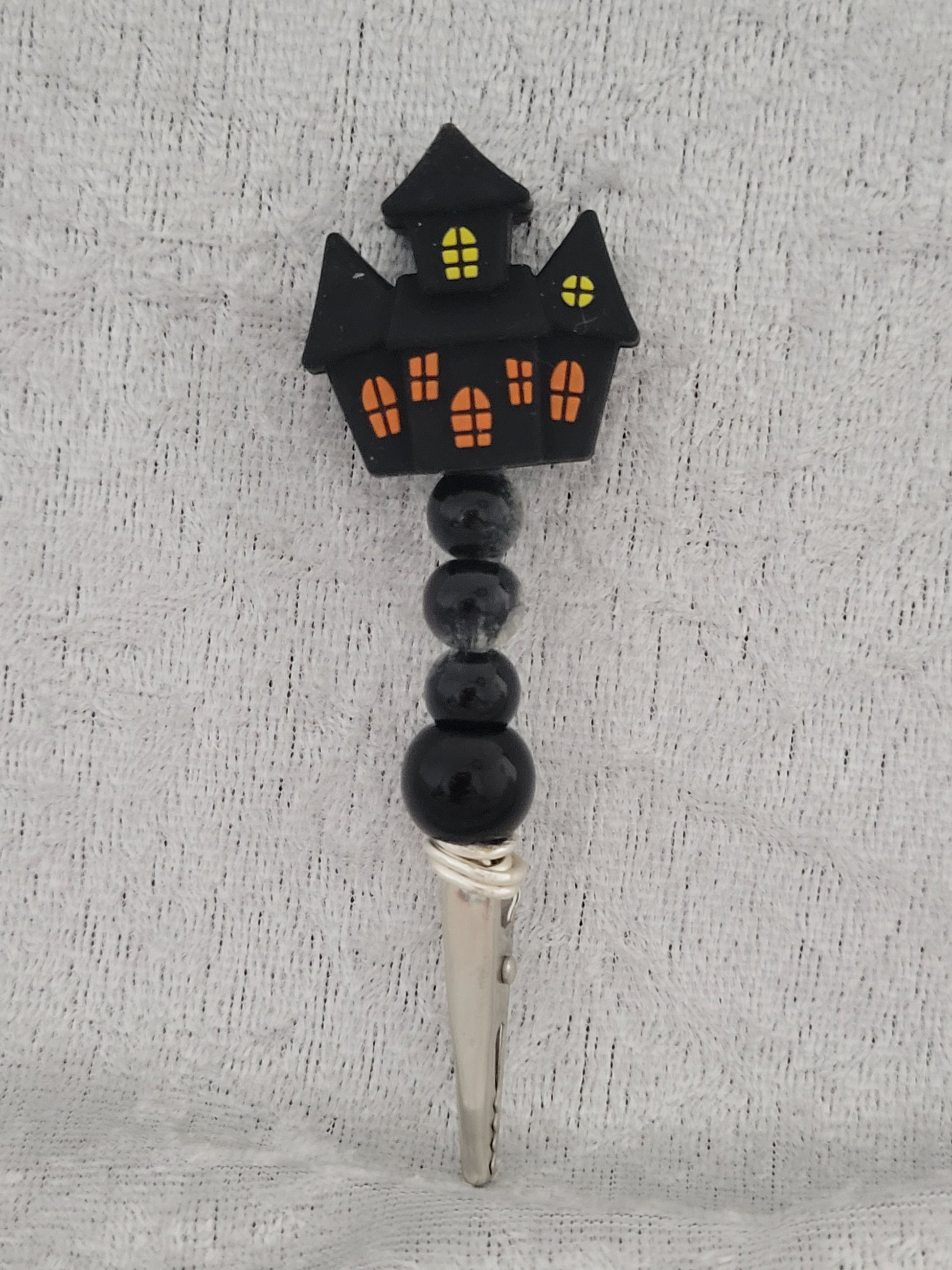Bring haunted vibes to your smoke with the Haunted Haven roach clip—black beads and glowing windows for a perfectly spooky Halloween session.