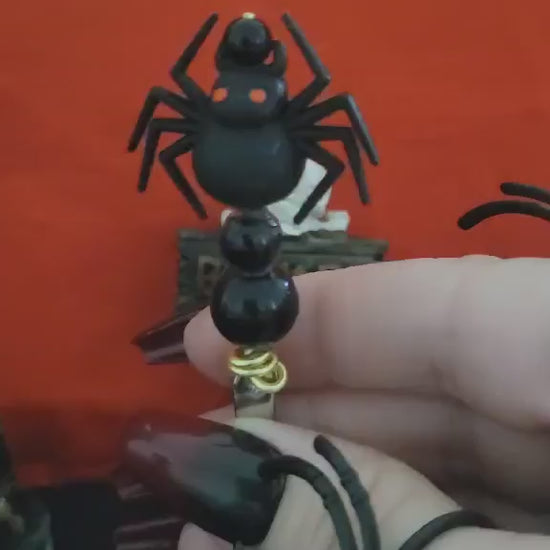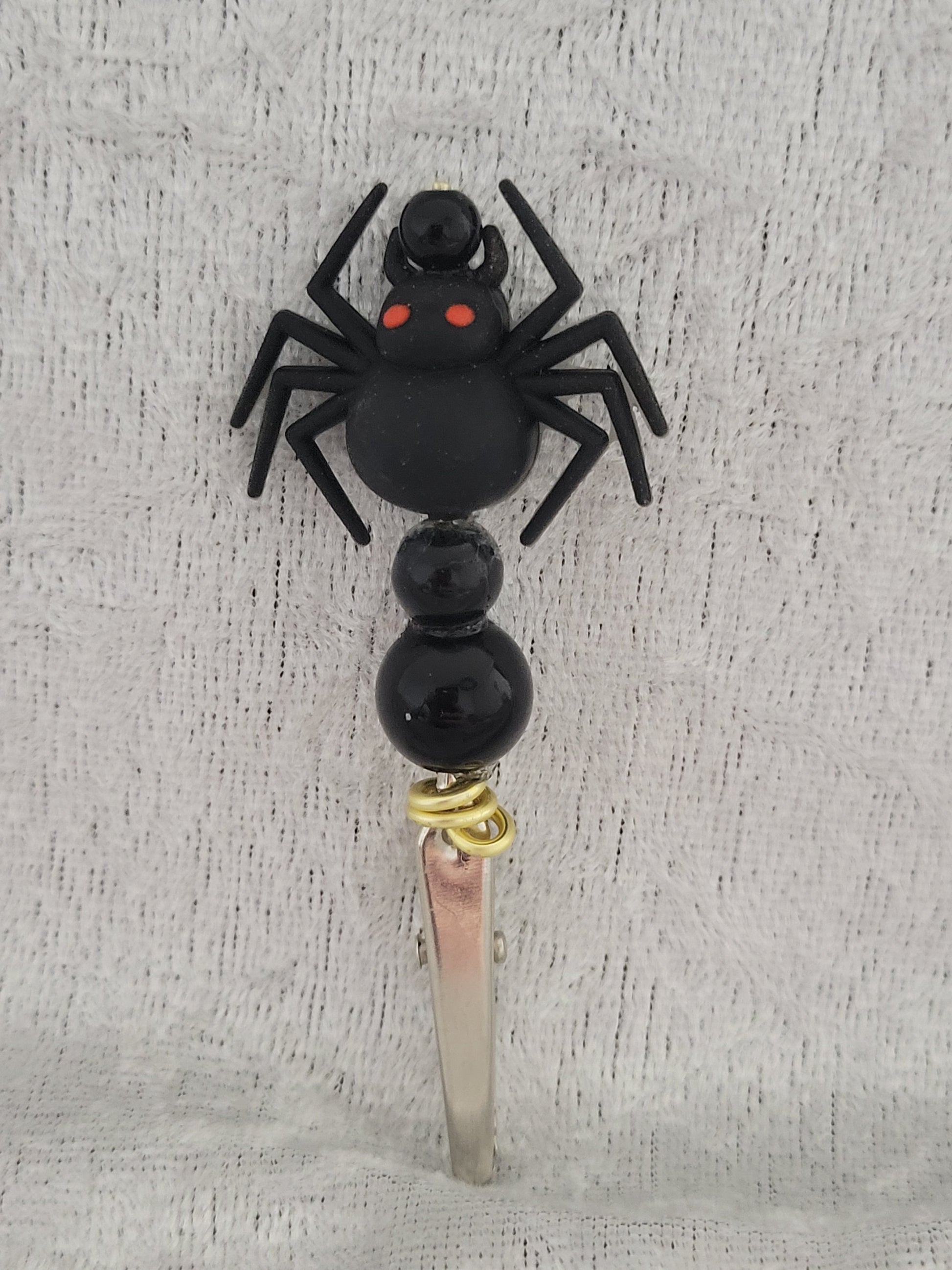 Spin a web of spooky style with Night Crawler roach clip—black spider bead with red eyes for a bold, gothic Halloween smoke accessory.