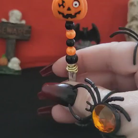Playful pumpkin vibes! Winking Pumpkin roach clip winks while keeping your roll secure—perfect Halloween or year-round spooky stoner accessory.